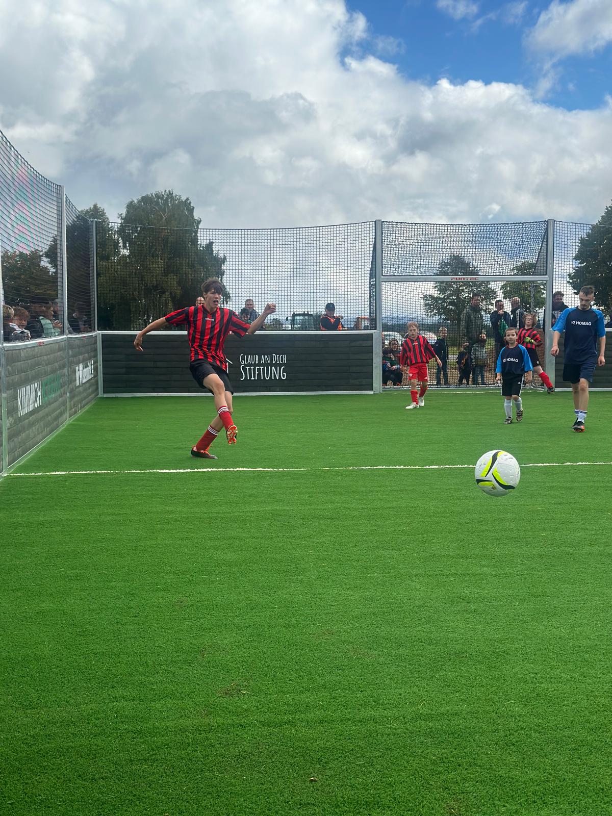 Ein Höhepunkt des Tages war die offizielle Einweihung des neuen Mini-Soccer-Court-Feldes, das in kürzester Zeit direkt neben dem Sportgelände entstanden ist. Gestiftet wurde es von der „Glaub an